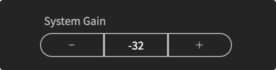 * Click the **+** and **–** buttons to increase or decrease the system gain in 1dB increments.